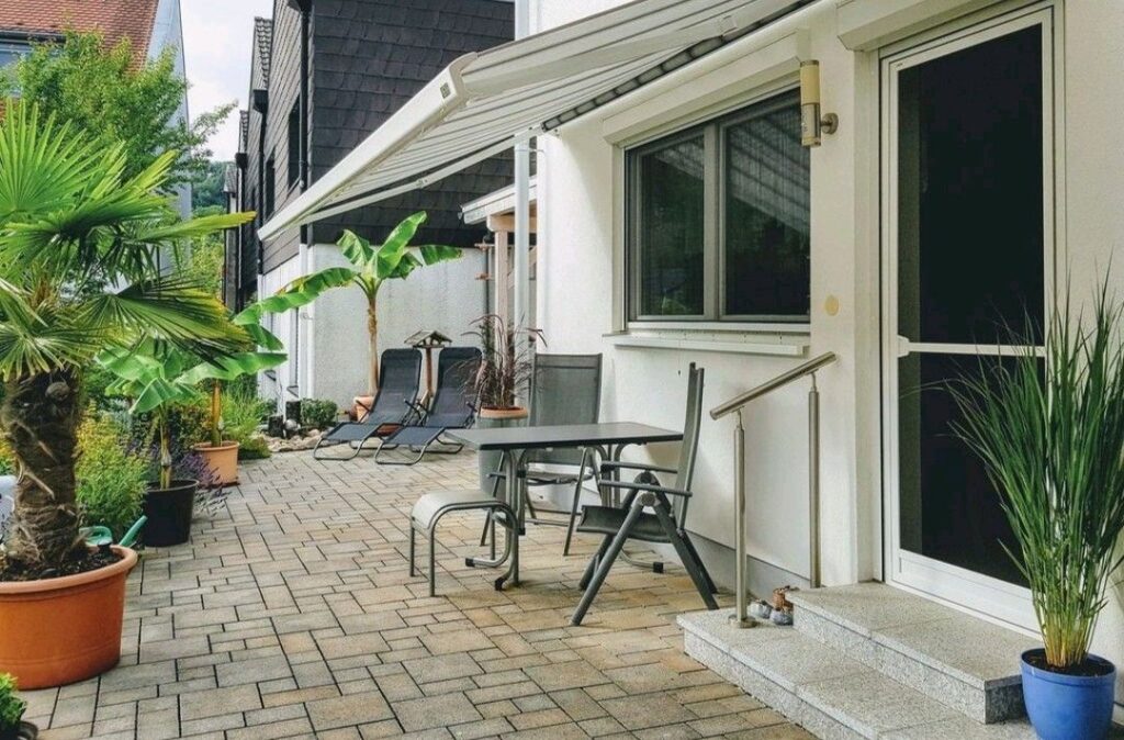 Moderne ruhige Wohnung, Küche komplett ausgestatte, TV, Tageslichtbad/Dusche, Terrasse mit Markise, Gartenmöbel und Grill, 100m zu Einkaufsmöglichkeit und Bus.