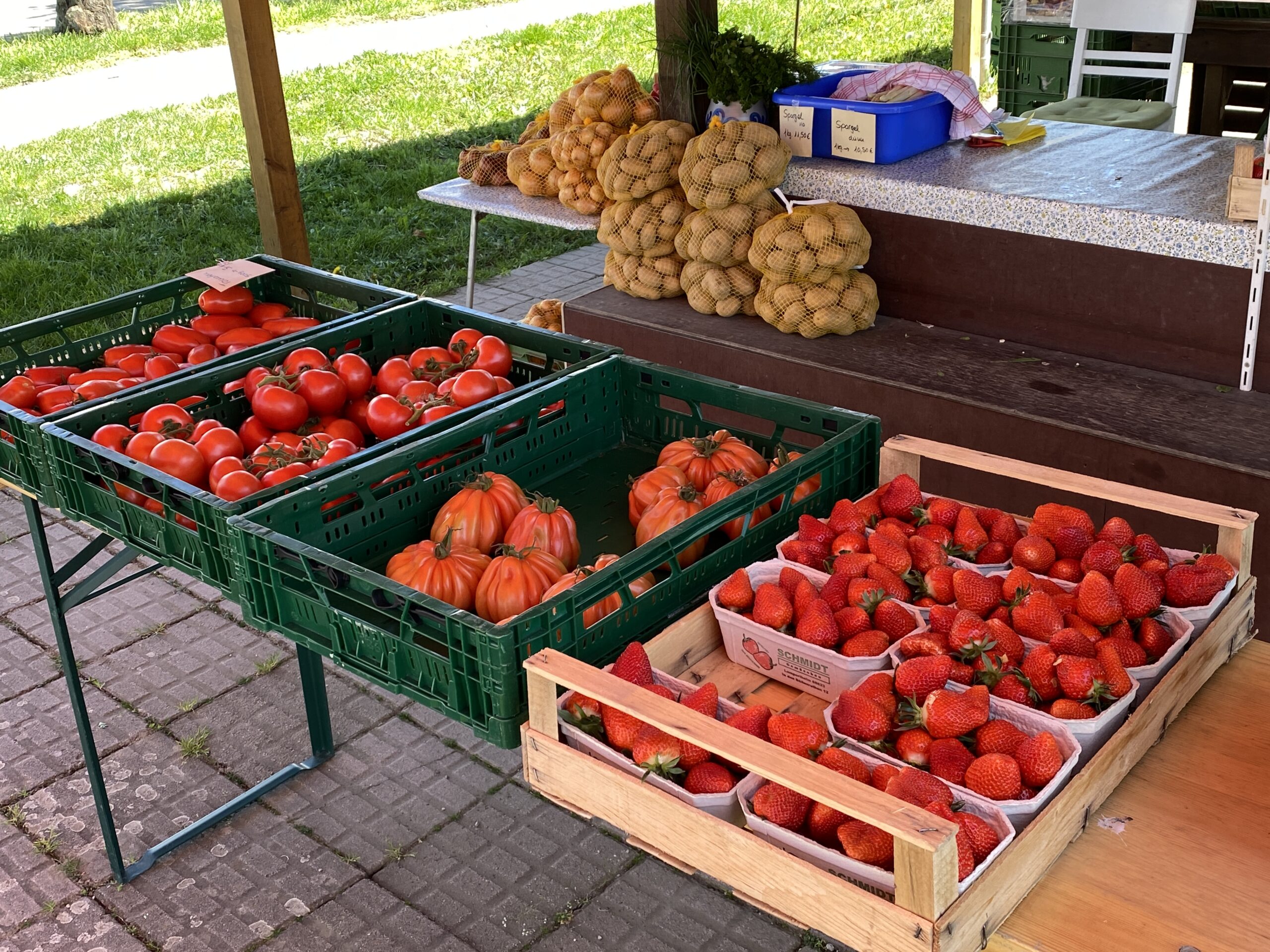 Von April bis November betreibt der Valentinhof aus Bürstadt einen Verkaufsstand in der Heidelberger Strasse 71, Bensheim neben der Sparkasse.